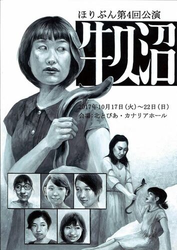 母娘が牛久沼で釣った立派な鰻を、町中の女達が奪い合う。そんな、およそ物語にはなり得なそうなあらすじだけの60分間を駆けめぐる。ほりぶん第4回公演『牛久沼』である。これが嘘みたいにおもしろい。ほりぶんの、と言うより鎌田順也の作る演劇はいつだって…